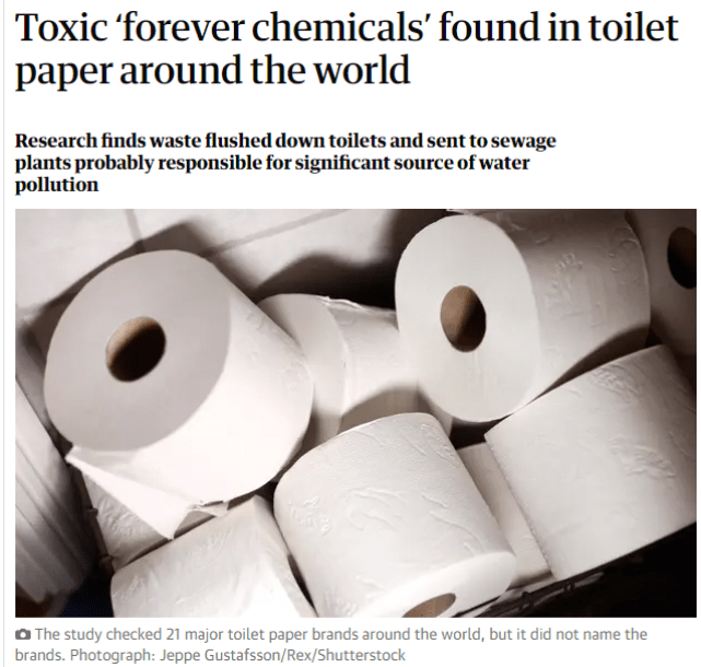 近日,美国佛罗里达大学的一项新研究发现,全球多地的卫生纸中都检测出有毒的永久性化学物——全氟烷基和多氟烷基物质(PFAs)。这些纸在冲下马桶、送入污水处理厂后,会被包裹在污水和污泥中,最终作为肥料喷洒在农田里,或者流入沟渠、江河等水道中,造成严重水污染。